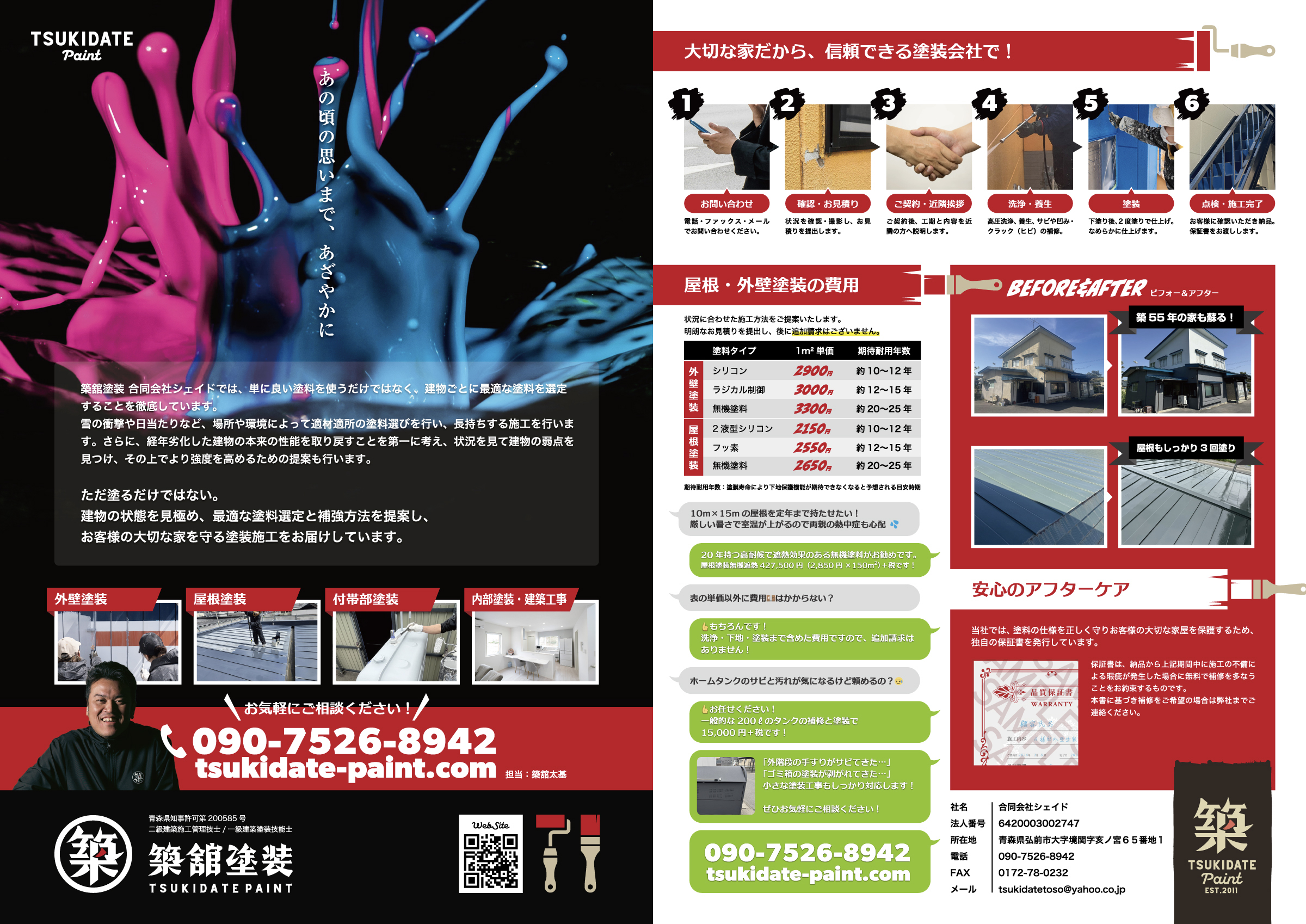青森県弘前市を拠点に、青森県全域・秋田県北部をカバーする建築塗装会社、築舘塗装(合同会社シェイド)です。