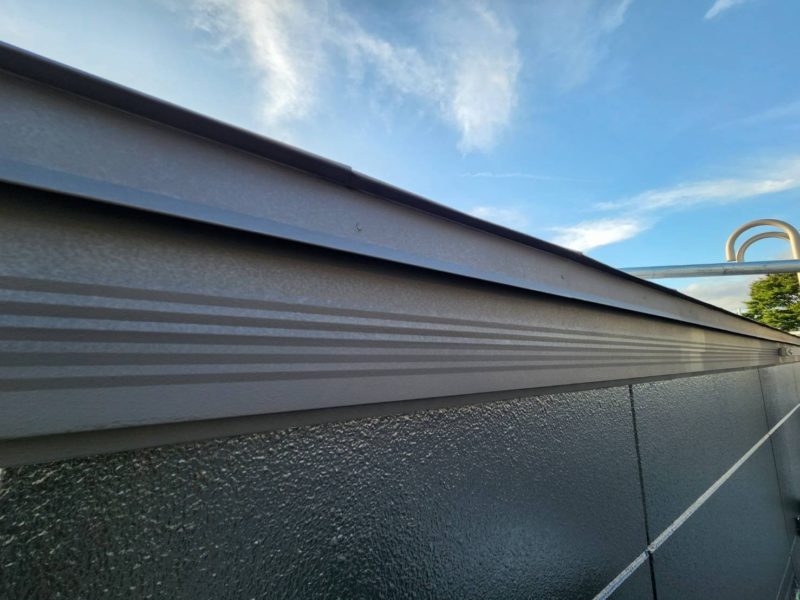 あわせて、屋根まわりの重要な付帯部である 破風部分の錆止め塗装 も実施。破風板は風雨や雪の影響を受けやすい箇所のため、防錆処理を確実に行うことで劣化を防ぎ、建物全体の耐久性をさらに高めています。