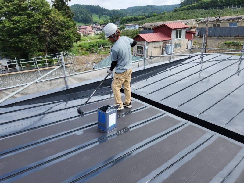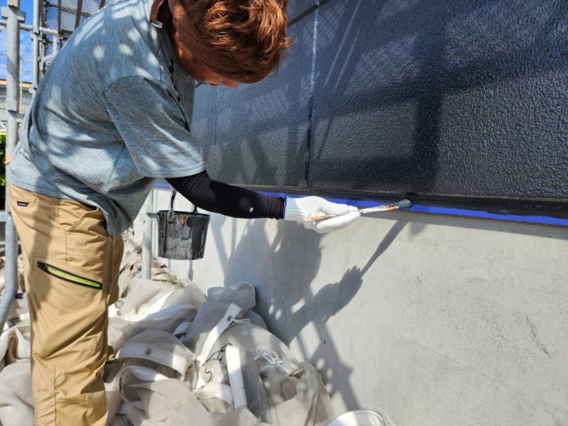 上塗りでは、屋根全体に塗膜をしっかり形成し、耐久性・防水性・美観を高めています。塗料を2回重ねることで厚みが確保され、塗料本来の性能が最大限に発揮されます。