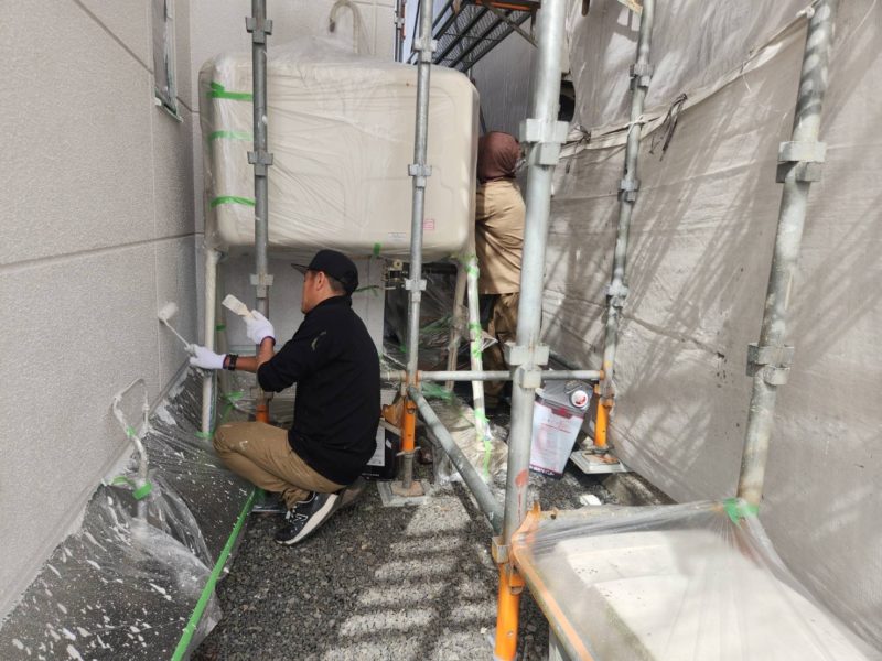 さらに今回は、建物まわりの ホームタンクもサービスで塗装。外壁とあわせて見た目がぐっと引き締まり、全体として統一感のある仕上がりになりました。
