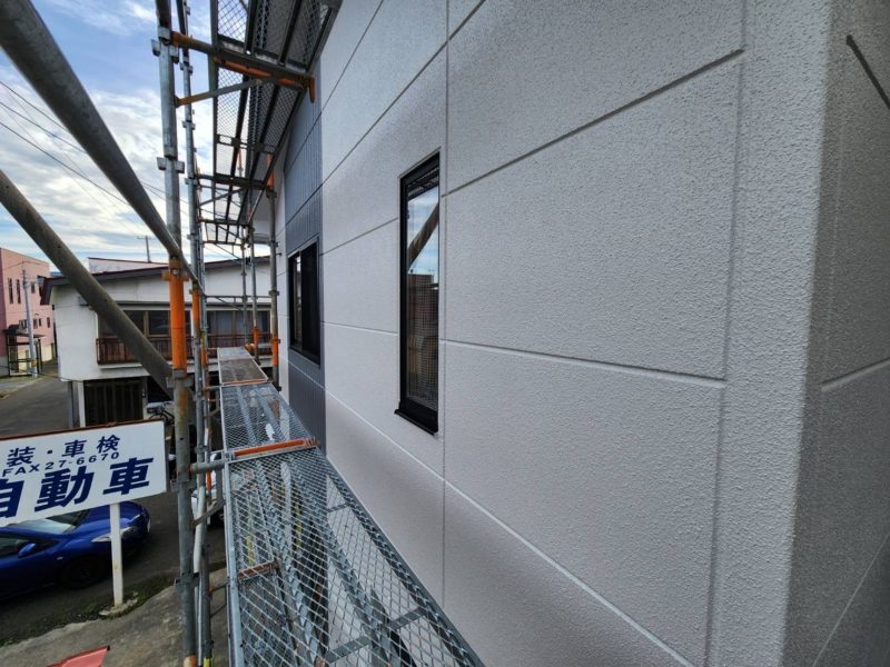 弘前市外壁にて、外壁の 中塗り・上塗り塗装 を施工しました。
