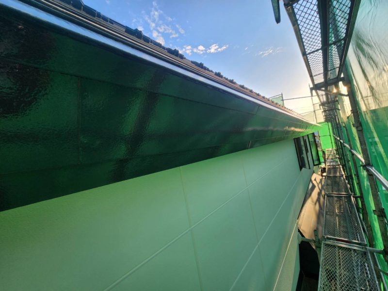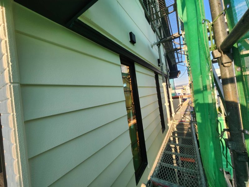 外壁は、上塗り1回目・2回目の施工を行い、塗膜にしっかりと厚みを持たせることで、美観と耐久性を高めています。