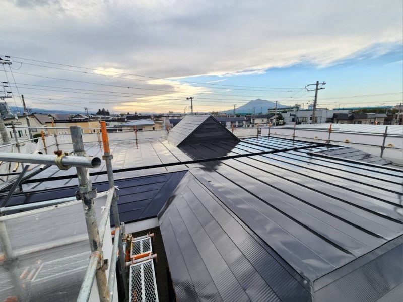 無機塗料ならではの高い耐候性を活かし、屋根全体に均一な塗膜を形成しています。