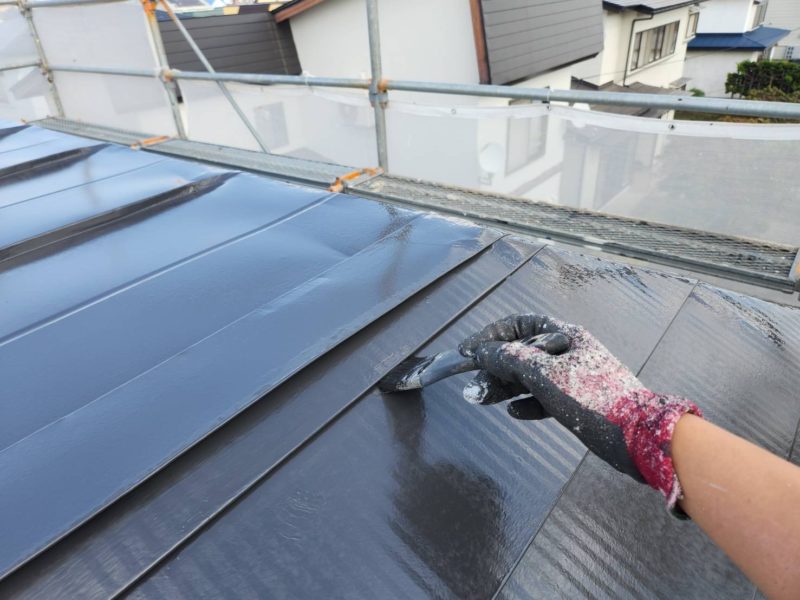 屋根塗装の最終工程が完了し、