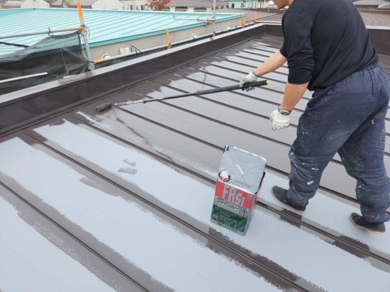 上塗りには、日本ペイント「グランセラベスト 2液ファイン」を使用。
