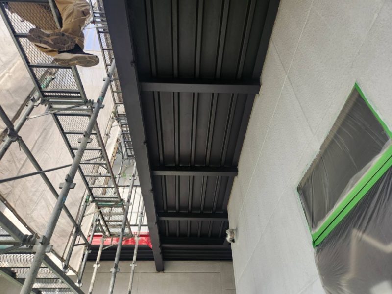 鉄骨階段は、雨や雪にさらされやすく、サビの進行によって劣化が早まる箇所。今回は、防錆性能に優れた専用の錆止め塗料を使用し、しっかりと下地を保護。これにより、階段の耐久性・安全性を高めるとともに、美観も大きく向上しています。